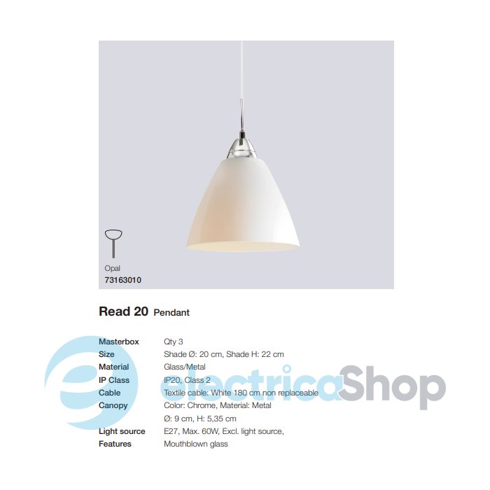 Підвісний світильник Nordlux READ 20 73163010 матиме гарний вигляд у сучасному інтер'єрі, доповнить простір вітальні або спальні. Чудово поєднується зі стилістикою модерн. Довжина кабелю – 1,8 м.