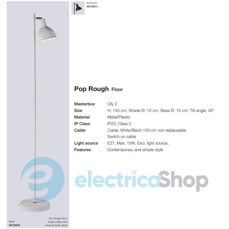 Торшер Nordlux POP ROUGH 48754011 матиме гарний вигляд у сучасному інтер'єрі, доповнить простір вітальні, спальні або кабінету. Чудово поєднується зі стилістикою модерн. Довжина кабелю – 1,5 м, вимикач на шнурі.