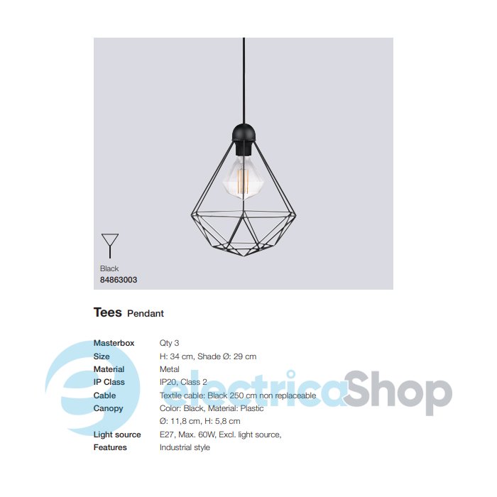 Підвісний світильник Nordlux TEES 84863003 матиме гарний вигляд у сучасному інтер'єрі, доповнить простір вітальні або спальні. Чудово поєднується зі стилістикою модерн та лофт. Довжина кабелю – 2,5 м.
