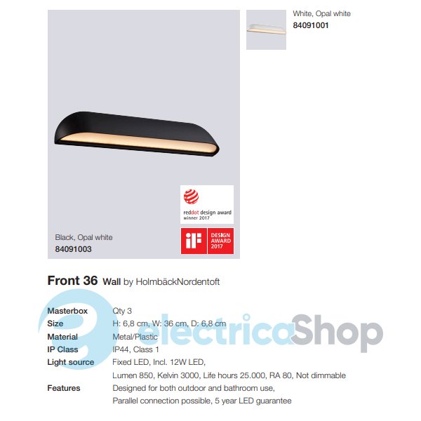 Вуличний світильник Nordlux FRONT 36 84091003 LED виготовлений з металу і пластика, має вбудоване світлодіодне джерело світла. Стане чудовим рішенням для підсвічування фасадів будівель, може бути використаний у ванній кімнаті.