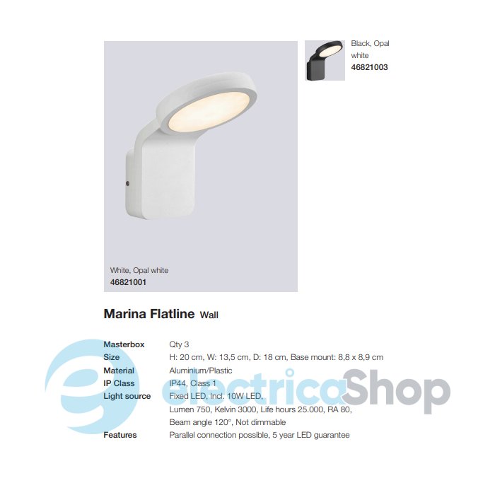 Вуличний світильник Nordlux MARINA Flatline 46821001 LED виготовлений з алюмінію та пластика, стане чудовим рішенням для підсвічування фасадів будівель і прибудинкових територій. Має високий ступінь пиловологозахисту IP44.