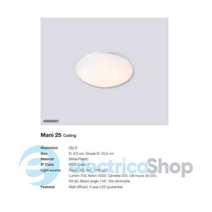 - Потужність світильника, Вт: 12