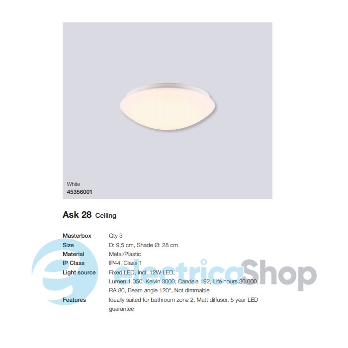 Стельовий світильник Nordlux ASK 28 45356001 LED матиме гарний вигляд у сучасному інтер'єрі. Виготовлений з металу та пластика, має вбудований LED-модуль на 12W, колірна температура – 3000K (теплий білий).