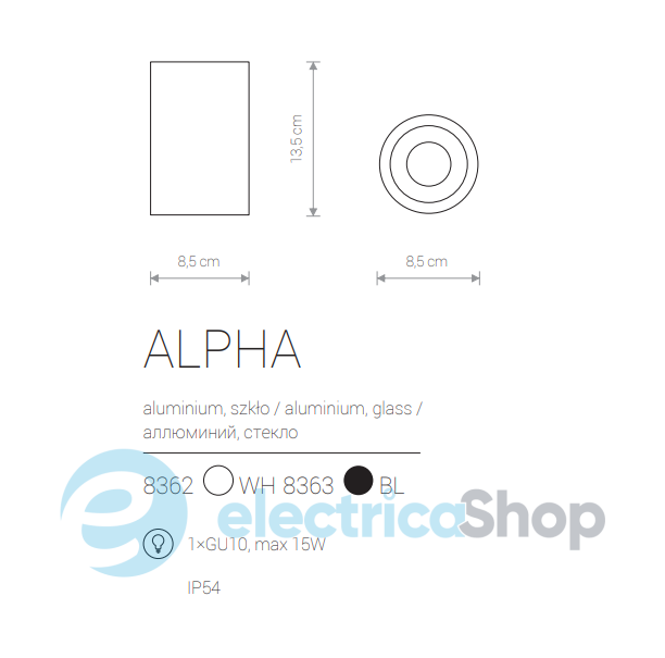 Точковий світильник Nowodvorski ALPHA Black 8363 матиме гарний вигляд у сучасному дизайні. Виготовлений з алюмінію та скла, має високу ступінь пиловологозахисту IP54, може використовуватися у ванній кімнаті, для підсвічування прибудинкових територій.