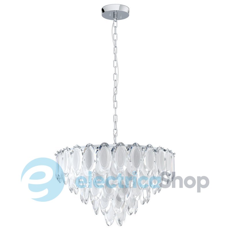 Люстра CARVARIO 39724 австрійського бренду Eglo™ стане справжньою окрасою для сучасного інтер'єру, підійде для просторих приміщень у стилі модерн та арт-деко. Арматура виготовлена з металу в кольорі хром, декоративні підвіски скляні.