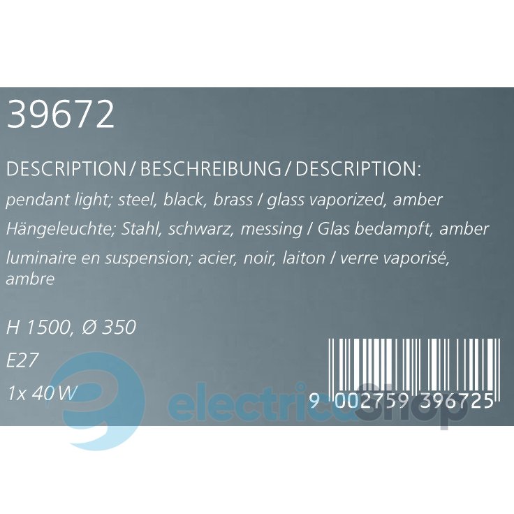 Підвісний світильник Eglo BULCIAGO 39672 матиме гарний вигляд у сучасному інтер'єрі, доповнить дизайн будь-якого приміщення. Основа виготовлена з металу, плафон скляний.
