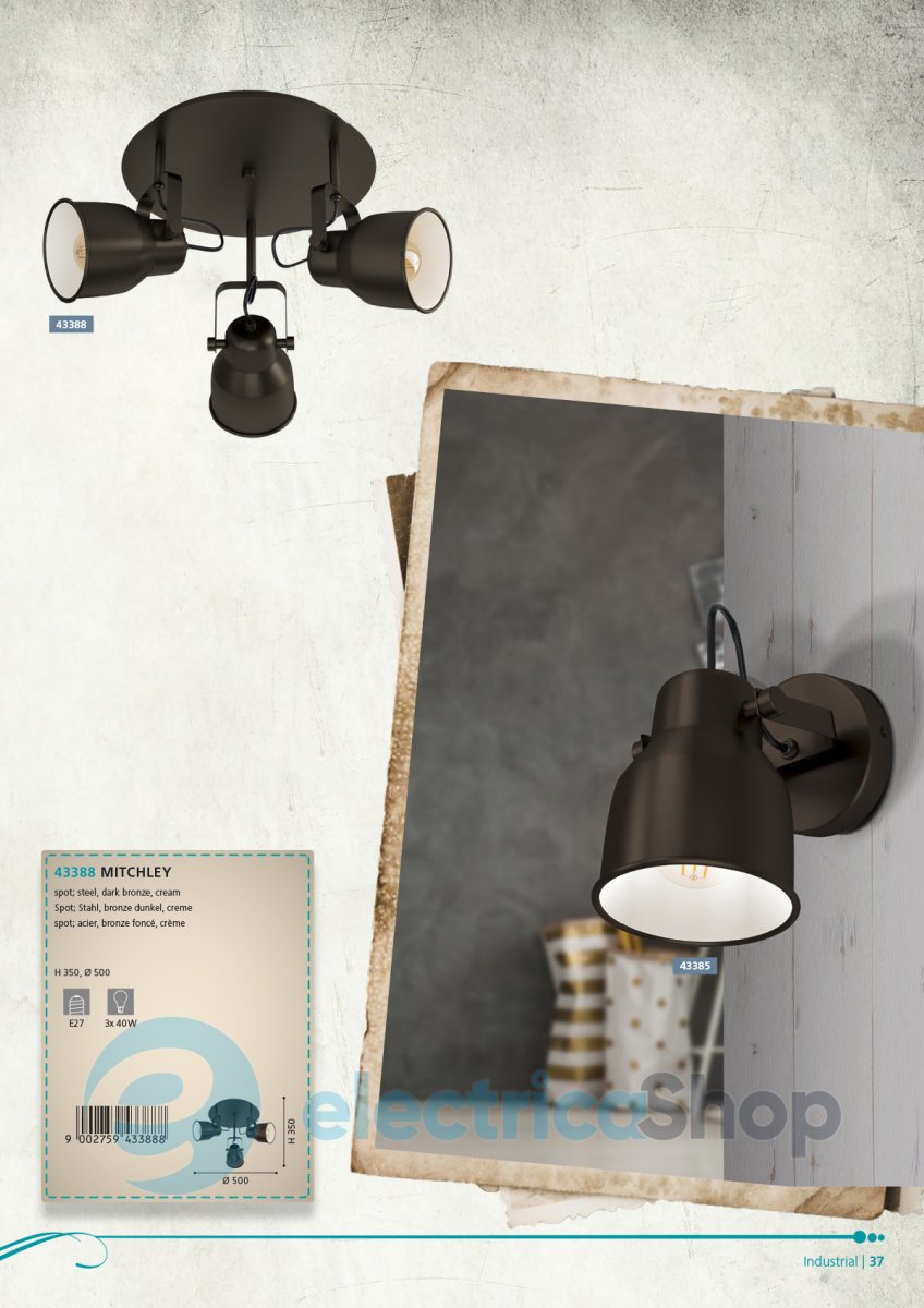 Світильник-спот MITCHLEY 43388 австрійського бренду EGLO матиме гарний вигляд у сучасному інтер'єрі, доповнить дизайн будь-якого приміщення. Виготовлений зі сталі, оздоблення кольору бронза, добре поєднується з декоративною лампою Едісона.