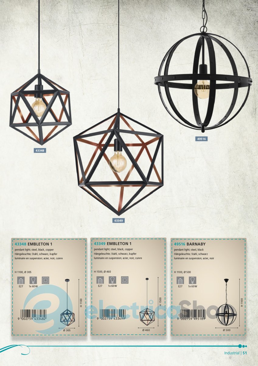 Підвісний світильник Eglo EMBLETON 1 43348 матиме гарний вигляд у сучасному інтер'єрі, доповнить дизайн будь-якого приміщення. Виготовлений зі сталі в чорному кольорі з мідним акцентом.