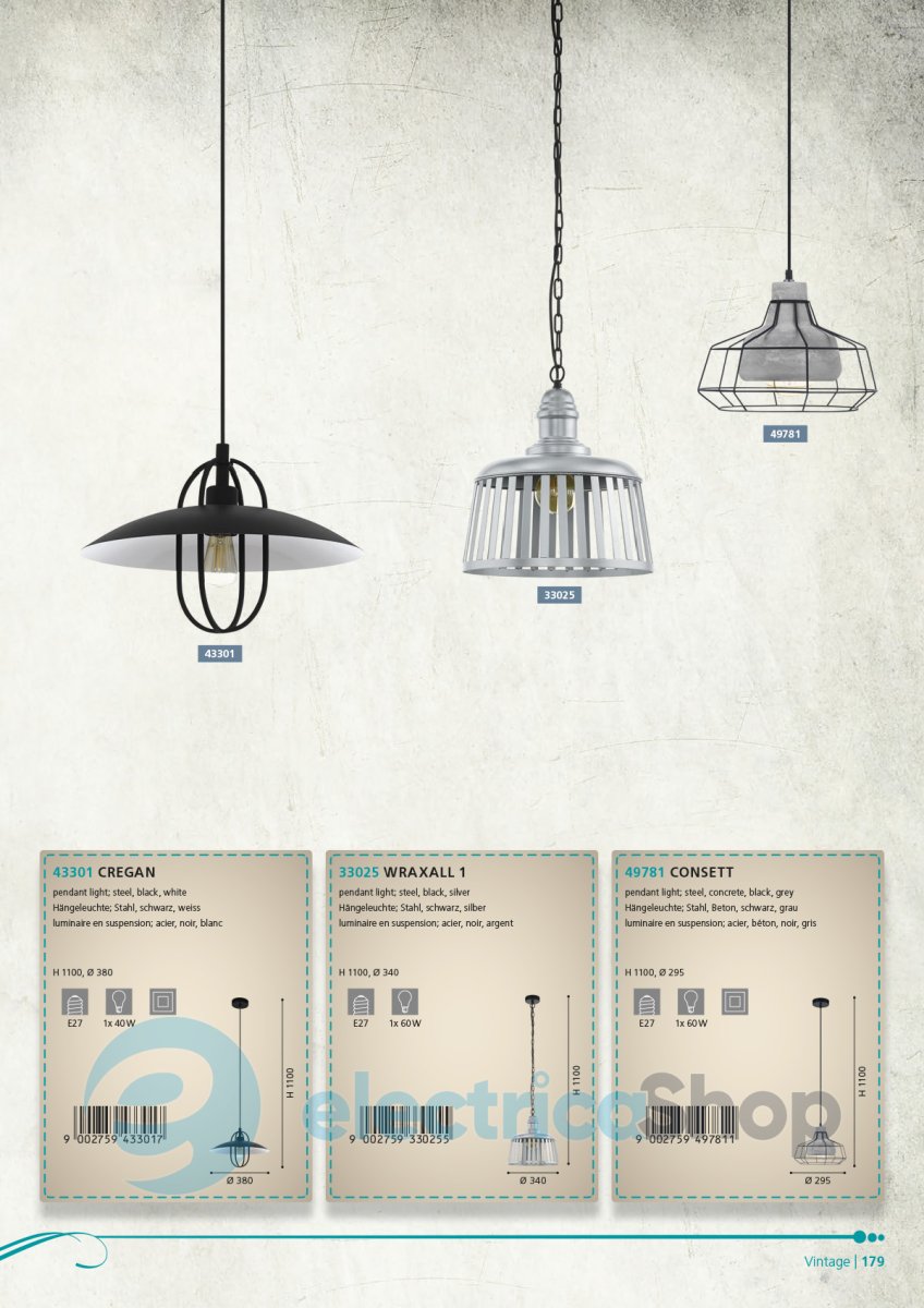 Підвісний світильник Eglo CREGAN 43301 матиме гарний вигляд у сучасному інтер'єрі, доповнить дизайн будь-якого приміщення. Основа та плафон виготовлені зі сталі.
