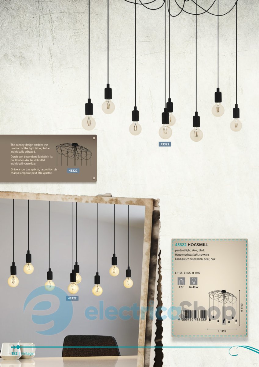 Люстра HOGSMILL 43322 австрійського бренду EGLO матиме гарний вигляд у сучасному інтер'єрі, доповнить дизайн будь-якого приміщення. Виготовлена зі сталі, положення плафонів можна змінювати за бажанням завдяки кабелю.