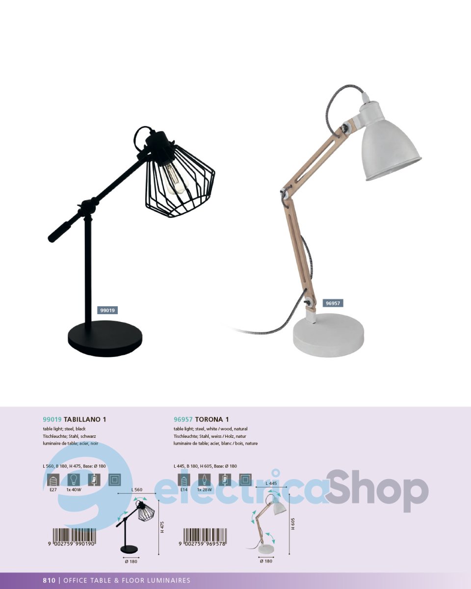 Настільна лампа Eglo TABILLANO 1 99019 стане трендовим рішенням для оформлення різноманітних просторів. Виготовлена зі сталі, чудово впишеться в сучасний інтер'єр і підкреслить дизайн. Положення плафона можна змінювати завдяки рухомій ніжці.