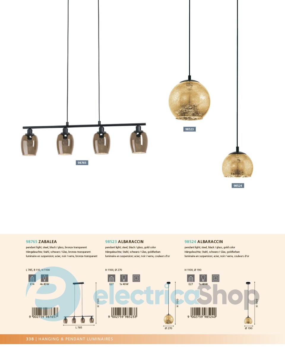 Люстра ZABALEA 98765 австрійського бренду EGLO матиме гарний вигляд у сучасному інтер'єрі, доповнить дизайн будь-якого приміщення. Виготовлена зі сталі, плафони скляні.