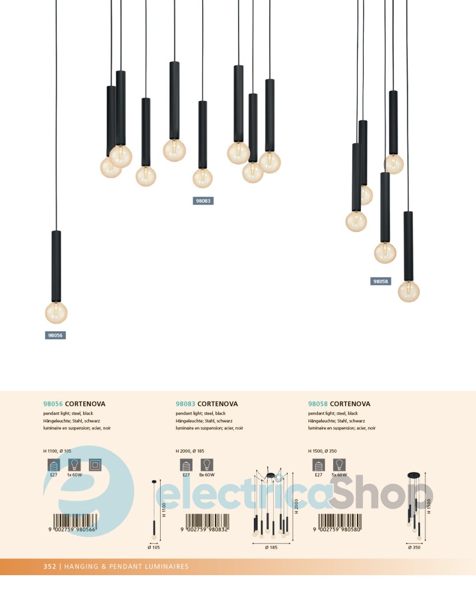 Люстра CORTENOVA 98083 австрійського бренду EGLO матиме гарний вигляд у сучасному інтер'єрі, доповнить дизайн будь-якого приміщення. Виготовлена зі сталі, оздоблення чорного кольору.