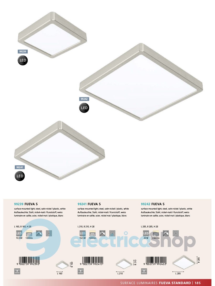 Накладний точковий світильник Eglo FUEVA 5 99239 зі стильної колекції Егло матиме гарний вигляд в інтер'єрі, оформленому в сучасному стилі. Світильник виготовлений зі сталі та пластику.