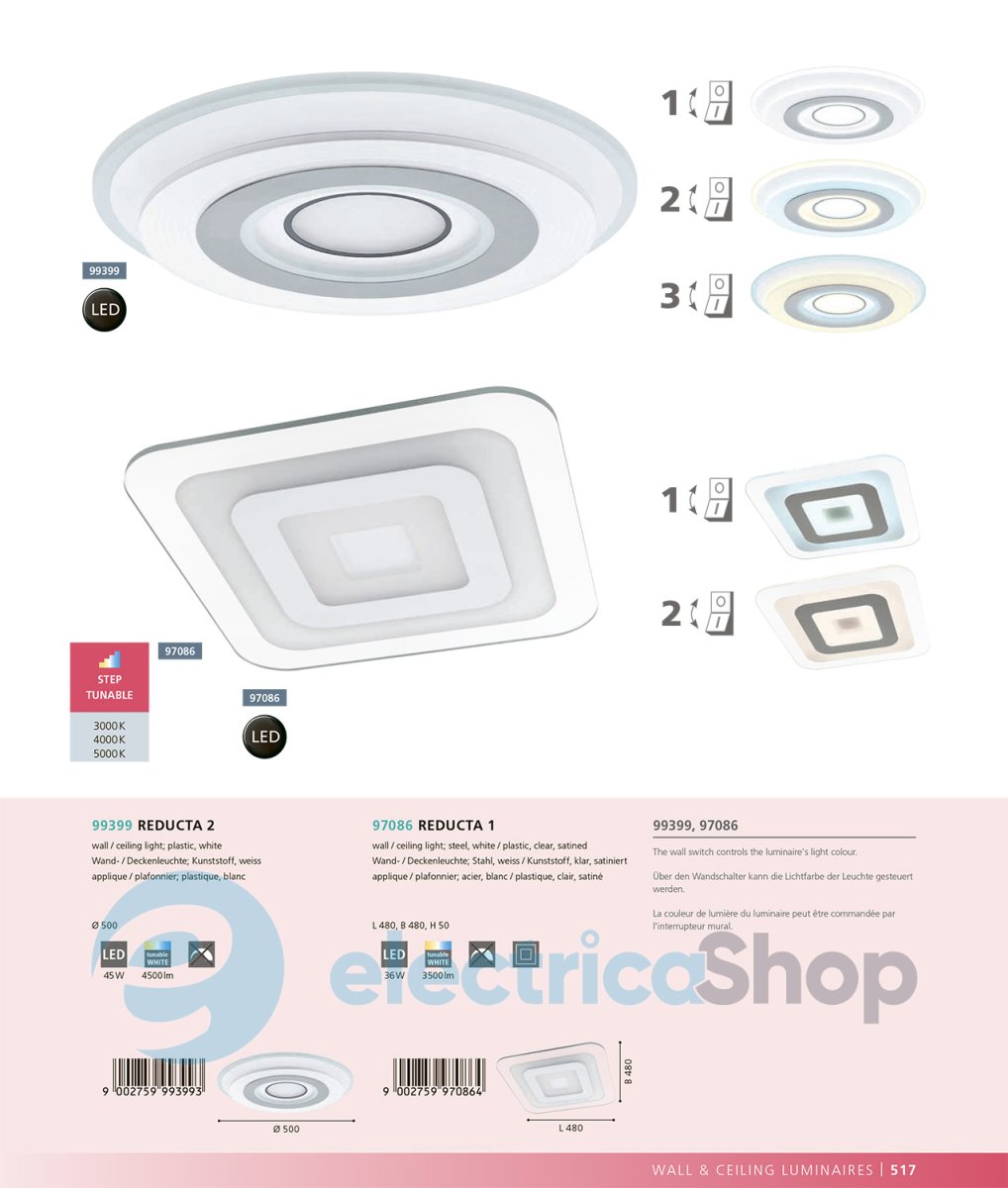 Люстра Eglo REDUCTA 2 99399 LED стане справжньою окрасою для приміщень, оформлених в сучасному стилі. Виготовлена з пластику. Вбудований led-модуль на 45W, колірна температура регулюється за допомогою вимикача.