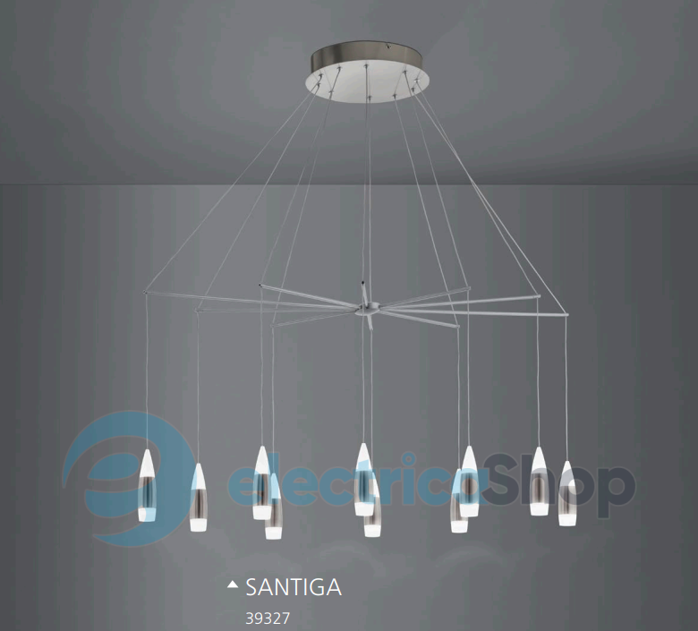 Підвісний світильник SANTIGA 39327 австрійського бренду EGLO матиме гарний вигляд у сучасному інтер'єрі, доповнить дизайн будь-якого приміщення та додасть декоративних акцентів. Основа виготовлена зі сталі, плафони – із пластику та алюмінію. Має вбудований LED-модуль, колірна температура – 3000K (теплий білий).