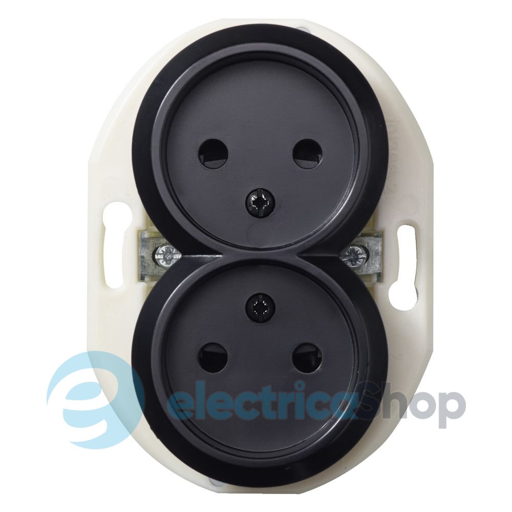 Renova – це практичне рішення для громадських і житлових просторів. Подвійна розетка без заземлення прихованого монтажу випускається в чорному кольорі.
