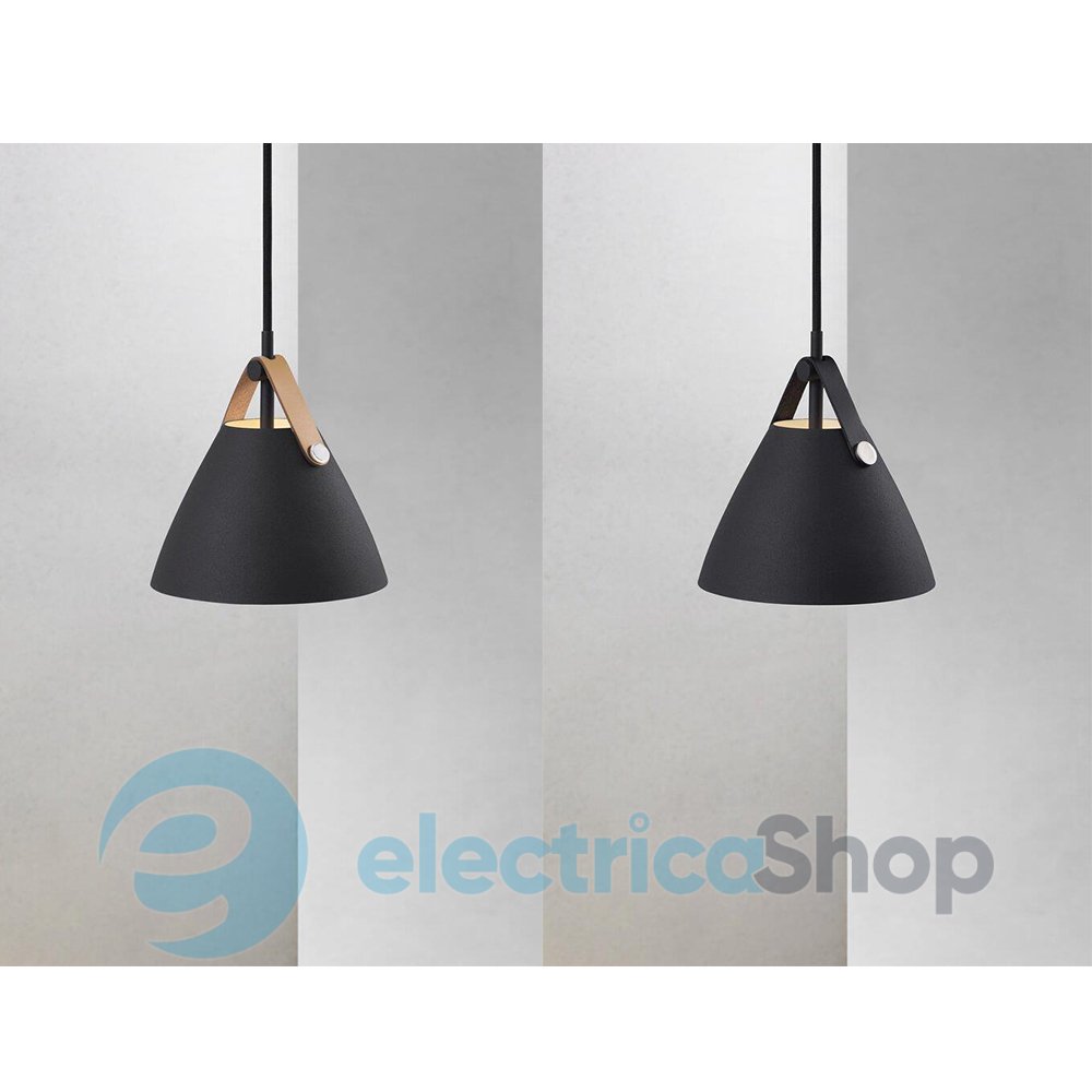Світильник виготовлений у сучасному скандинавському стилі, поєднання елементів зі шкіри, металу та скла роблять предмет освітлення незамінною частиною сучасного інтер'єру. У комплект входить 2 ремінці чорного та коричневого кольору. Використовується із LED-лампами.