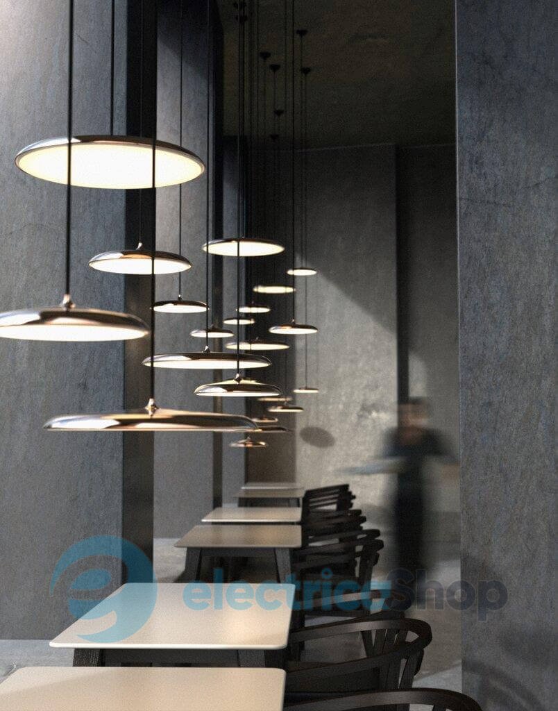 Світильник виготовлений із міцних, якісних матеріалів. Сучасне стильне виконання дозволяє розмістити його як у житлових, так і в комерційних просторах. Кабель – 300 см.