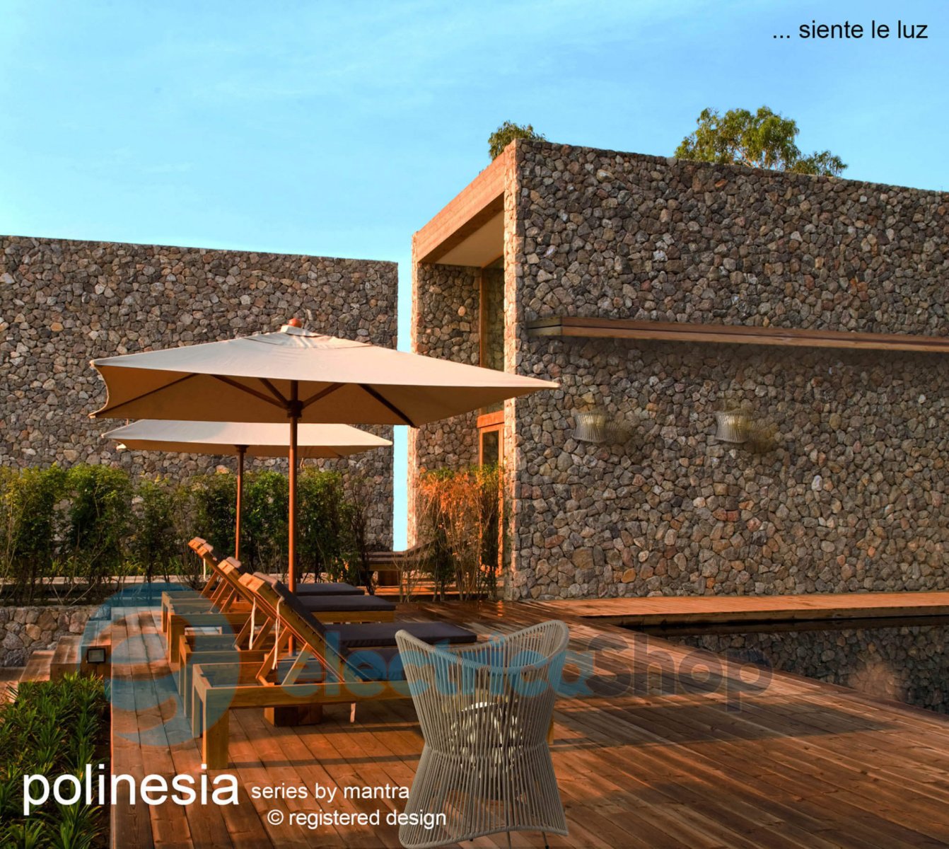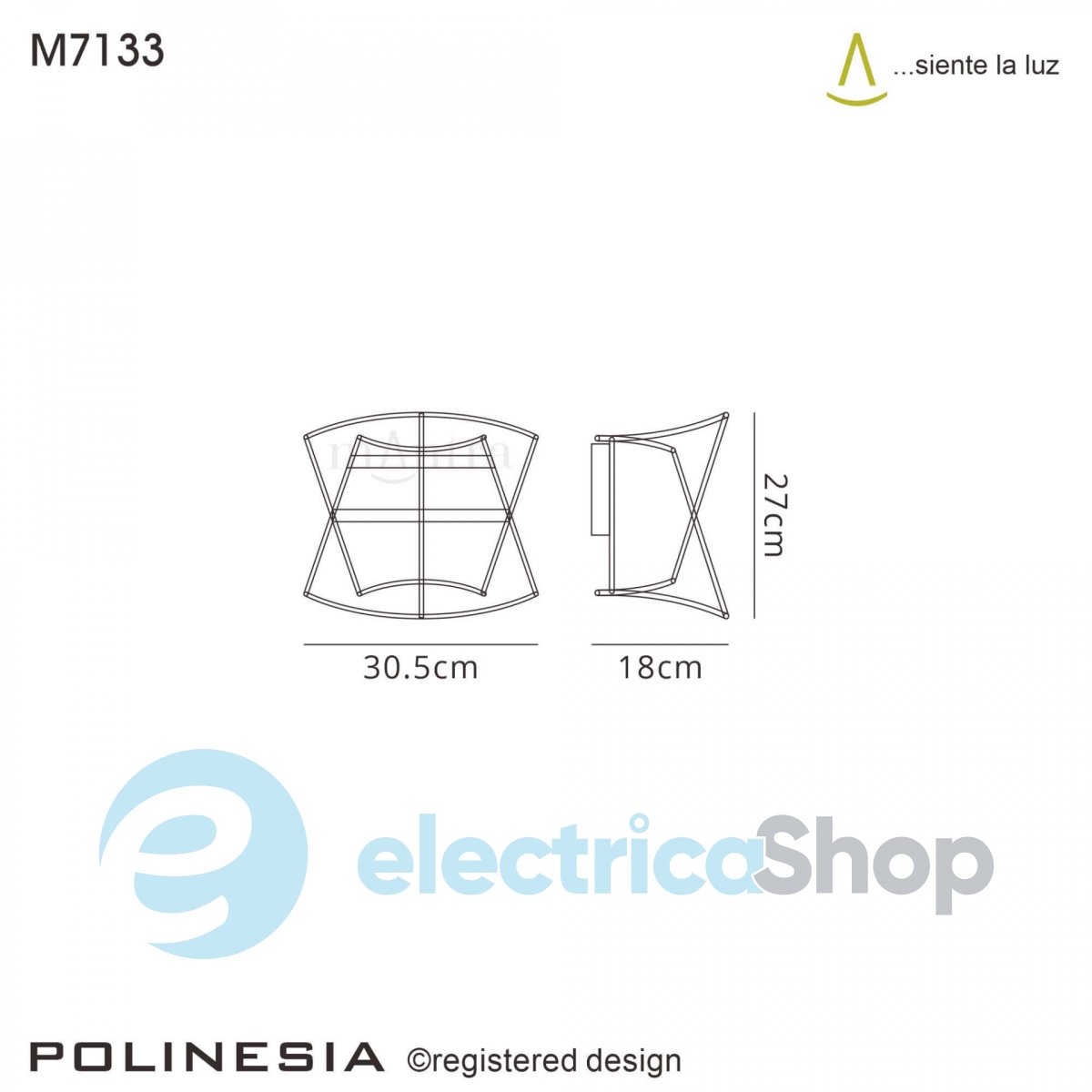 Вуличний світильник Mantra POLINESIA WALL LAMP 1 LIGHT 7133 матиме гарний вигляд у сучасних в сучасних екстер'єрах. Цікавий дизайн підійде для етнічної тематики, стилю кантрі, природних мотивів.
