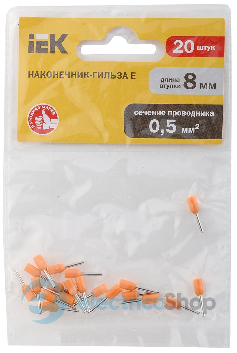 – Тип: Наконечник-гільза Е0508 0.5мм2 (помаранчевий 20шт) ІЕК. уп.Цей вид наконечників призначений для окінцювання багатодротяних гнучких проводів. Зачищений кінець багатожильного дроту заводять у середину порожнистої трубки, а потім опресовують разом із трубкою за допомогою спеціального інструменту, утворюючи єдину конструкцію, що надійно фіксує пучок багатодротової жили.