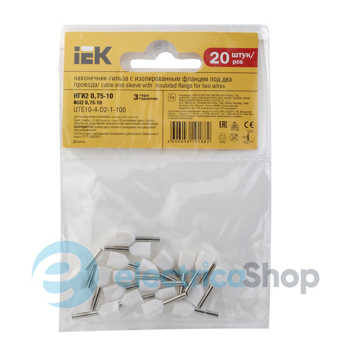 – Тип: Наконечник-гільза НГИ2 0.75-10 (білий 20шт) ІЕК. уп. ІЕК. уп.Наконечники призначені для з'єднання або окінцювання дротів та кабелю з мідними або алюмінієвими жилами.