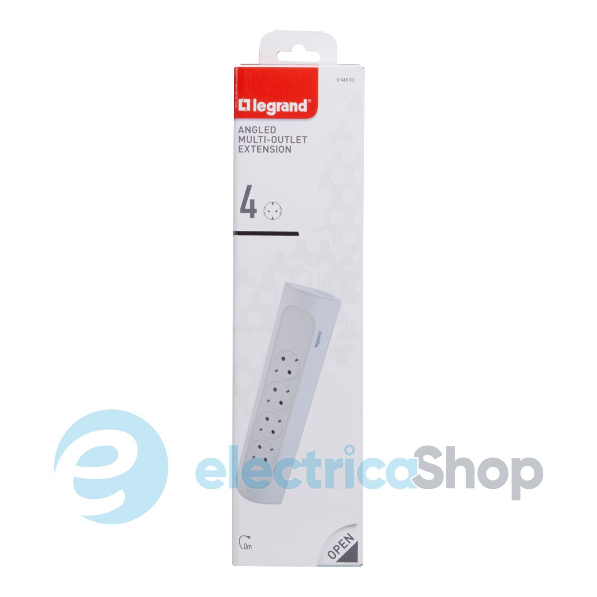 Кутовий подовжувач від французького бренду Legrand виготовлений із якісних матеріалів. Для пристрою використовували пластик, що стійкий до ультрафіолетових випромінювань. Укомплектований зручними гніздами для вилок. Виріб призначений для розподілу електроенергії у приміщеннях.