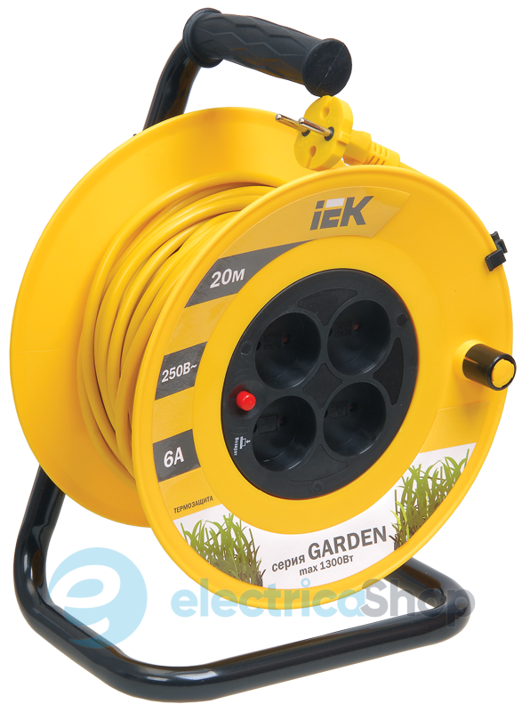За допомогою цього подовжувача на котушці легко підключити віддалене на відстань до 20 метрів від стаціонарної розетки електрообладнання.