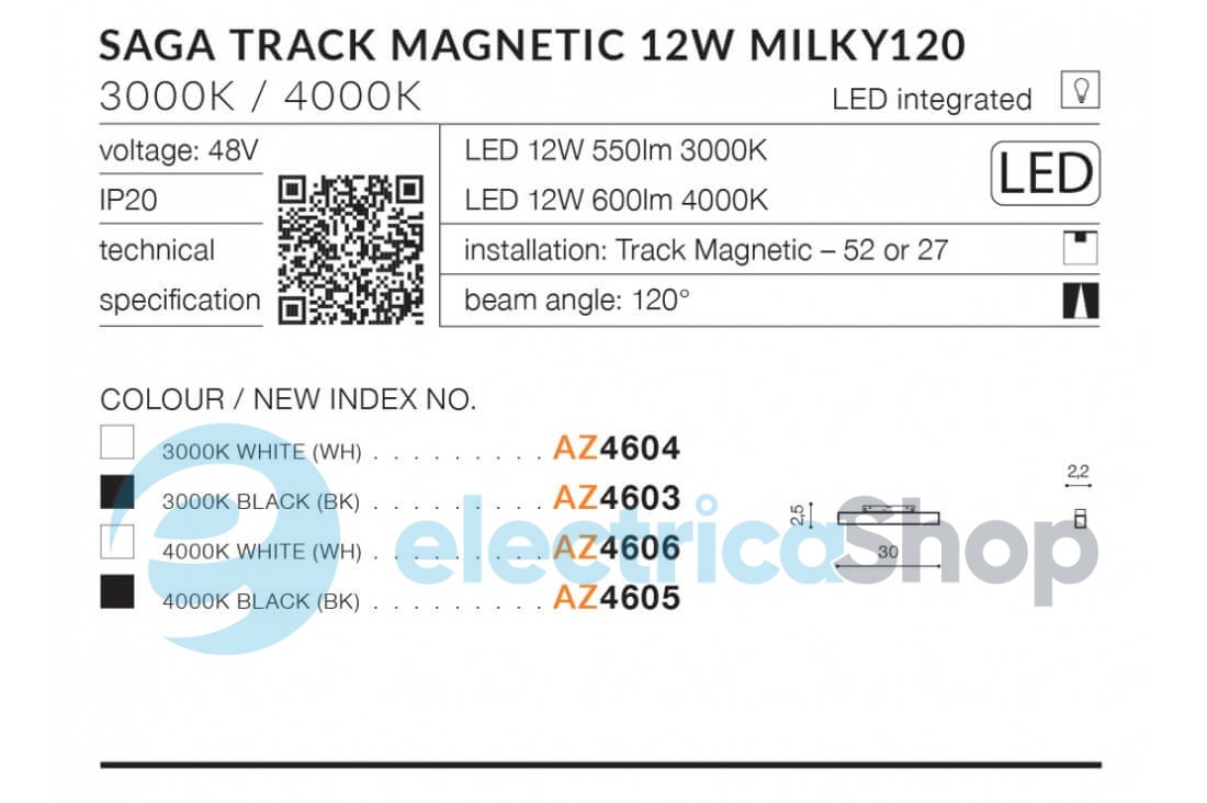 Магнітний трековий світильник AZzardo SAGA TRACK MAGNETIC 12W MILKY120 3000K WH AZ4604