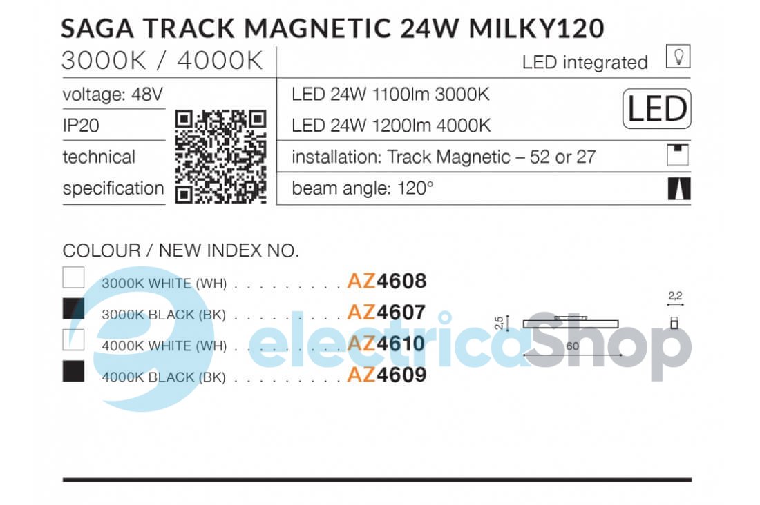 Магнітний трековий світильник AZzardo SAGA TRACK MAGNETIC 24W MILKY120 4000K BK AZ4609 матиме гарний вигляд у сучасних інтер'єрах. Підійде для освітлення кафе, барів, офісних і житлових приміщень. Виготовлений із металу.