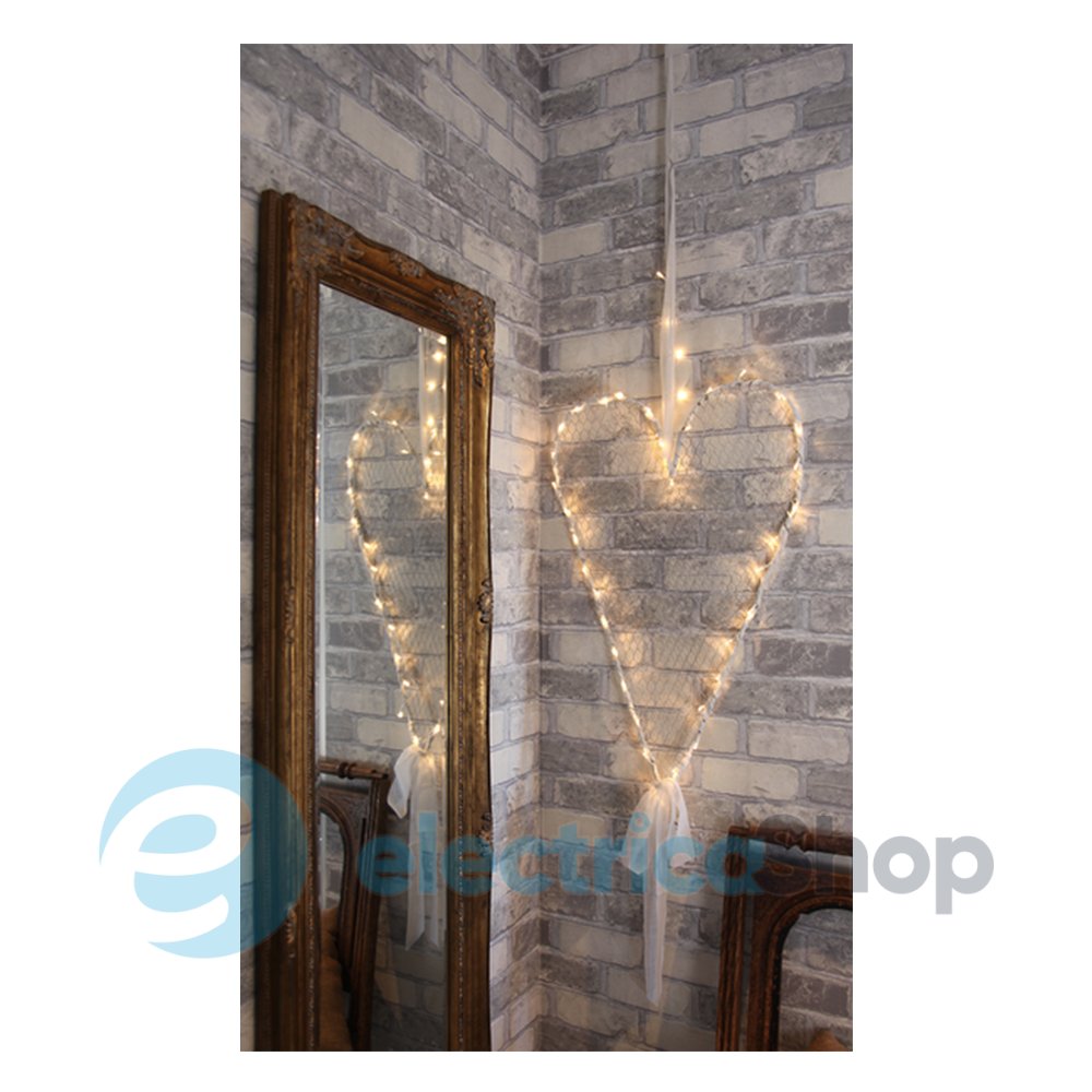 Декор у вигляді серця матиме чудовий вигляд в сучасних приміщеннях. Металевий каркас окантований діодами, що випромінюють м'яке біле світло. Цей елемент декору стане вдалим доповненням до групи декорацій. Його можна розмістити і як самостійний елемент дизайну у комерційному чи житловому просторі.