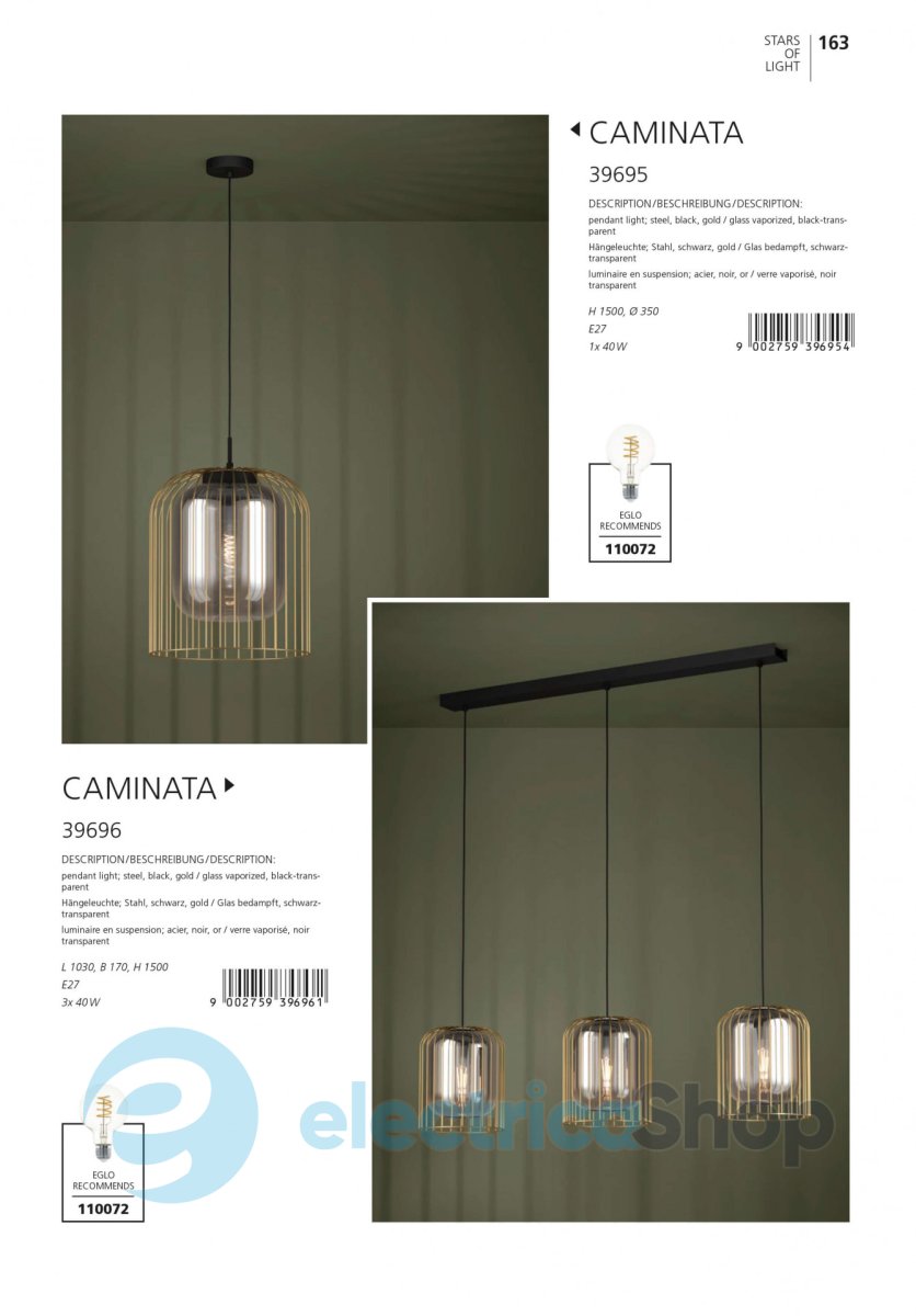 Підвісний світильник CAMINATA 39696 австрійського бренду EGLO матиме гарний вигляд у сучасному інтер'єрі, доповнить дизайн будь-якого приміщення та додасть декоративних акцентів.