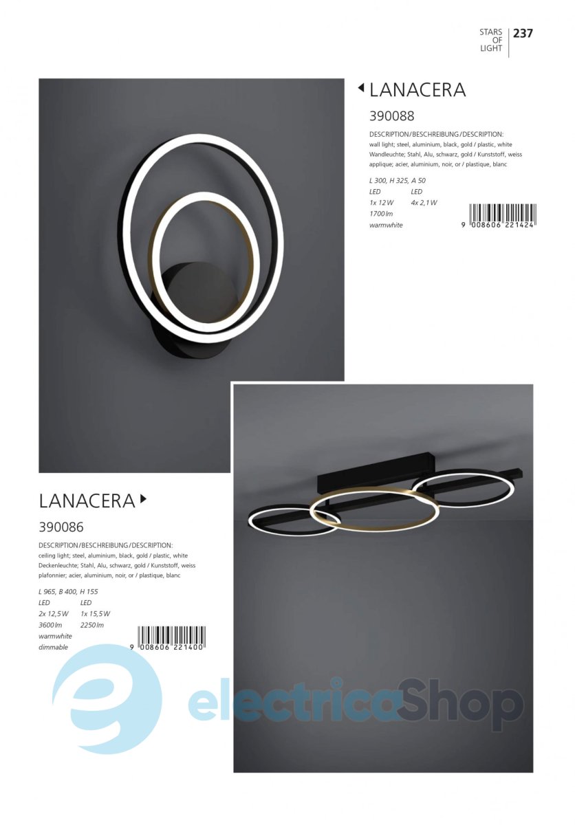 Настінний світильник LANACERA 390088 австрійського бренду EGLO матиме гарний вигляд у сучасному інтер'єрі, доповнить дизайн будь-якого приміщення та додасть декоративних акцентів.
