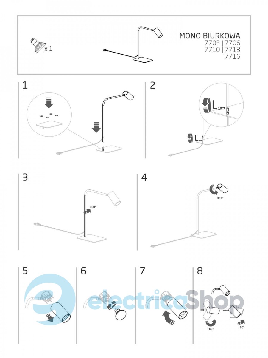 Настільна лампа Nowodvorski MONO 7713 матиме гарний вигляд як у житлових, так і в громадських приміщеннях. Універсальний дизайн ідеально підійде для сучасних інтер'єрів.
