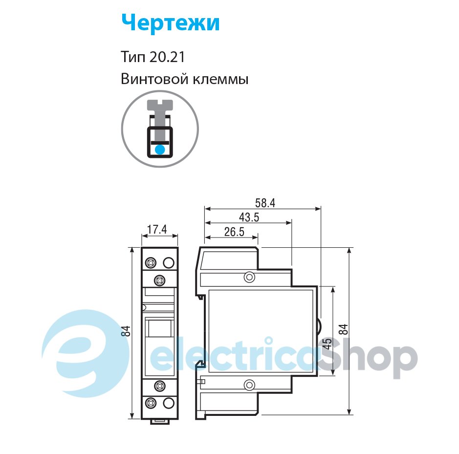 Контакт: 1 НВ. 1-відкритий контакт у нормальному стані (1NO).