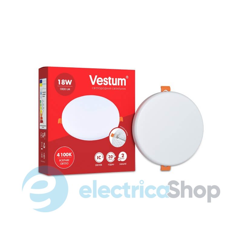 Світлодіодний світильник врізний Vestum 1-VS-5506 потужністю 18 Вт дає 1800 Лм світла. Споживаючи в рази менше електроенергії, ніж лампи розжарювання або люмінесцентні лампи, світильник дає таку ж кількість світла й прослужить в кілька разів довше. Панель за допомогою розсувних кліпс встановлюється в підготовлений заздалегідь отвір.