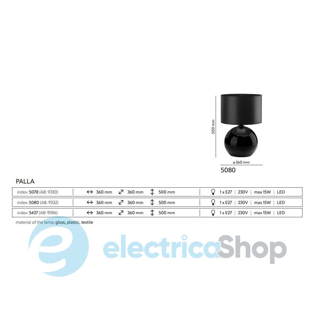 Настільна лампа TK-Lighting PALLA BLACK 5080 матиме гарний вигляд у сучасних інтер'єрах, підійде для стилістики модерн, класичних рішень. Використовується з LED-лампами.