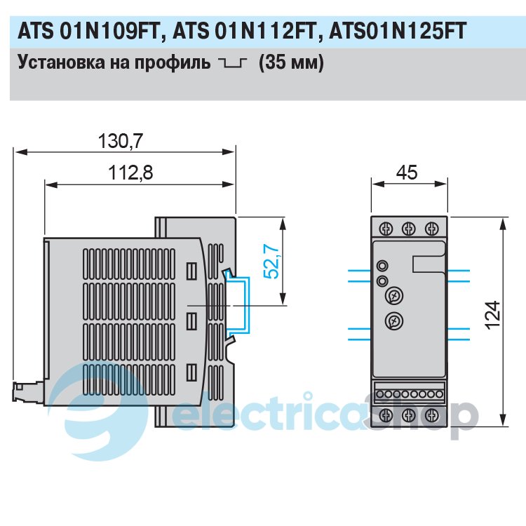 - Місце встановлення / підключення: DIN-рейка, Монтажна панель