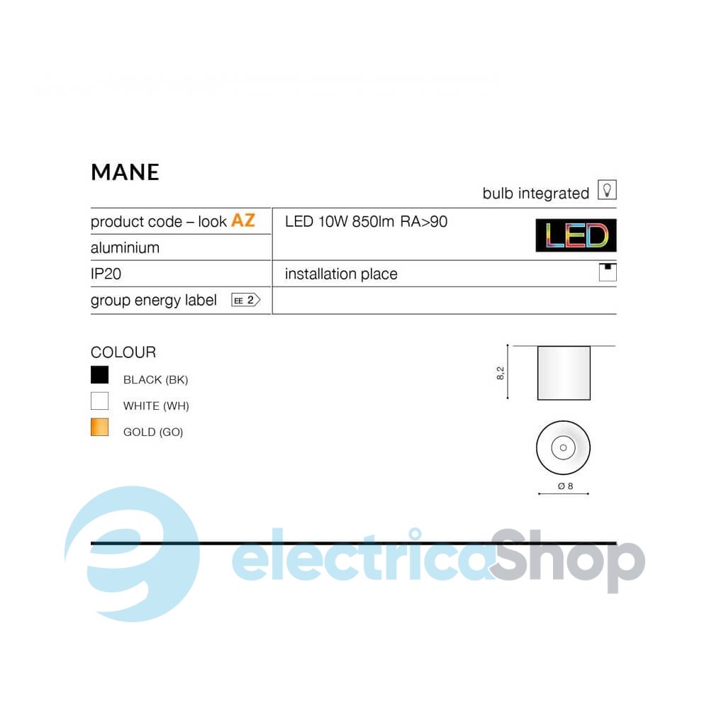 Накладний точковий світильник AZzardo Mane 10W AZ4322 матиме гарний вигляд у сучасних інтер'єрах. Корпус світильника виготовлений з алюмінію. Кут освітлення – 90-100°.