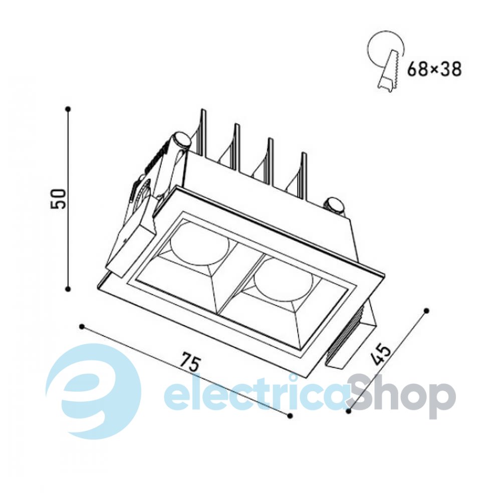 - Діаметр врізки, мм: 68x38