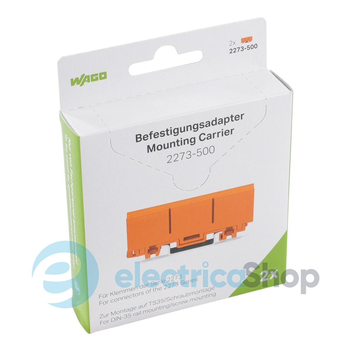Монтажный адаптер для клемм серии 2273, позволяет закрепить клеммы на DIN-рейку 35мм, либо винтами на любую поверхность.