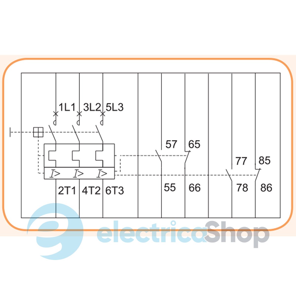 Контакти 57, 55 та 66, 65 замикаються/розмикаються у разі спрацювання теплового або електромагнітного захисту.