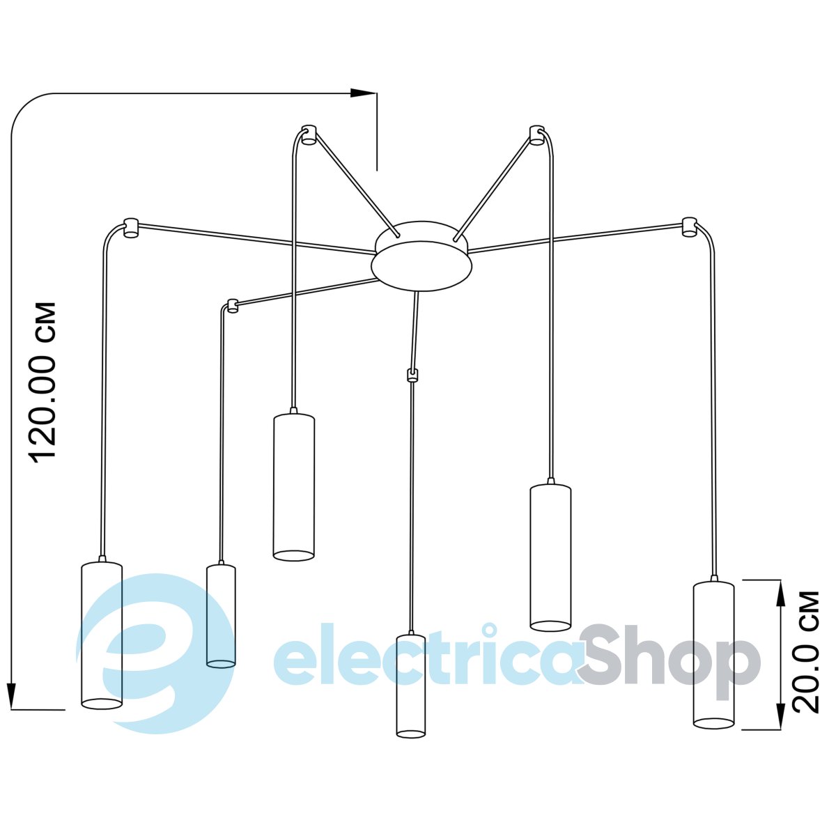 Люстра ImperiumLight Accent 47620.01.01 має стильне та сучасне оформлення, застосовується в житлових приміщеннях і комерційних просторах. Завдяки універсальному дизайну, її можна розмістити як у вітальні або спальні, так і в ресторані, галереї. Виготовлена з металу. Діаметр плафона – 5,6 см, висота – 20 см.
