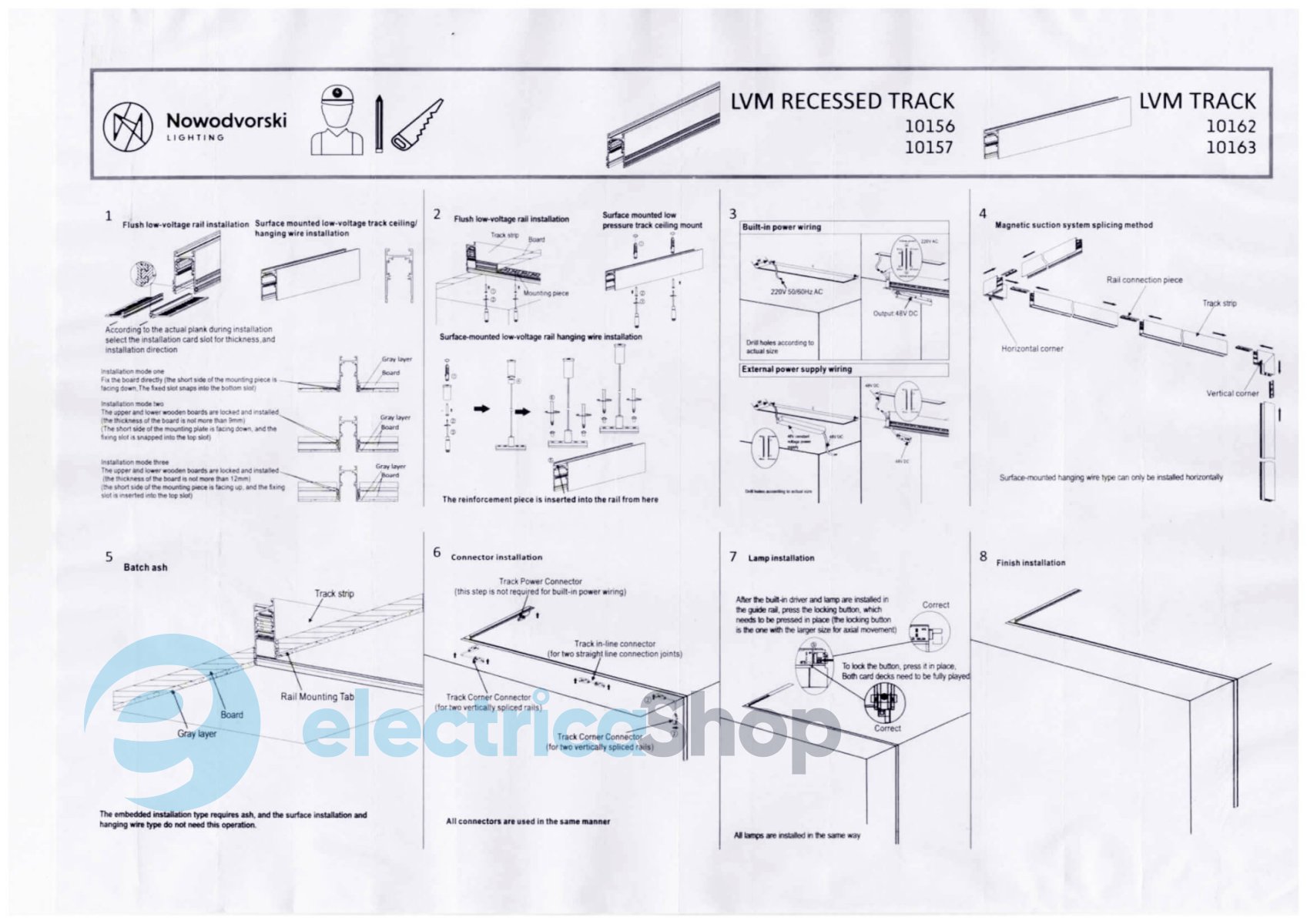 Магнітний шинопровід накладний Nowodvorski LVM TRACK 1M 10162 для магнітних трекових світильників бренду Nowodvorski. Одна фаза, дві лінії живлення.
