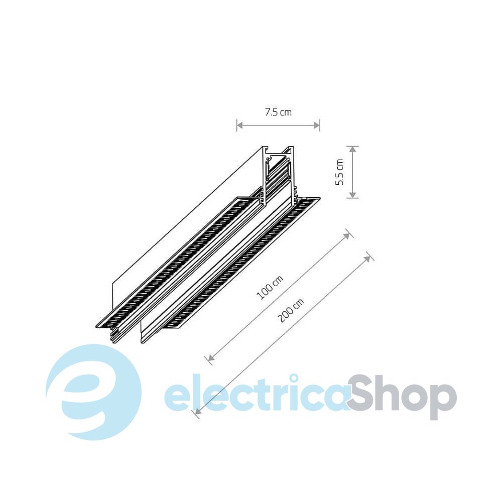 Магнітний шинопровід врізний Nowodvorski LVM RECESSED TRACK 1M 10156 для магнітних трекових світильників бренду Nowodvorski. Одна фаза, дві лінії живлення.