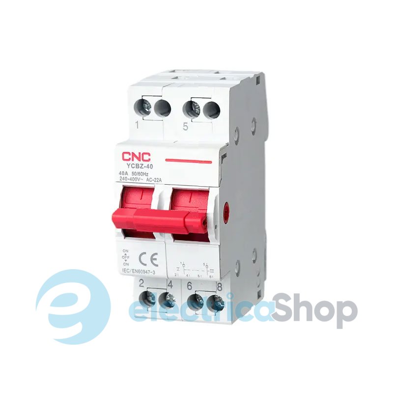 Перемикач YCBZ-40 2P призначений для розмикання однофазних електричних ланцюгів та перемикання навантаження в нормальних умовах експлуатації.