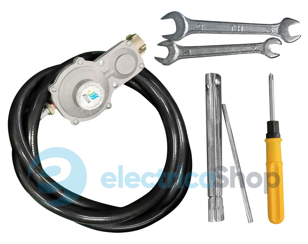 Генератор укомплектований додатковими аксесуарами: ключ свічковий, шланг з редуктором, викрутка РН2 6,0 мм.