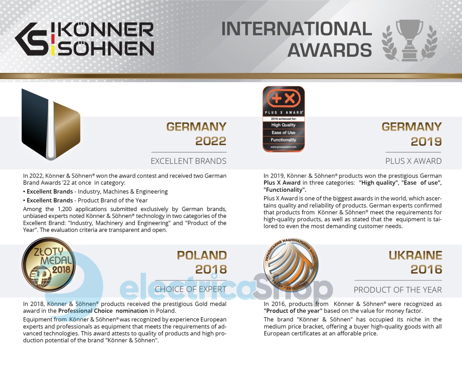 Альтернатор з мідною обмоткою і потужний двигун K&S гарантують безаварійне і тривале використання та відповідають всім європейським стандартам якості.