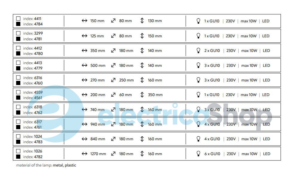 - Матеріал плафонів: Метал, Пластик