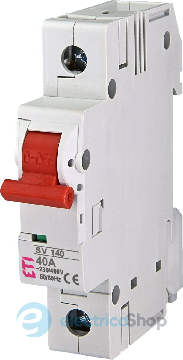 Однополюсний вимикач навантаження ETI SV140 застосовується для встановлення в розподільчих щитах як головний вимикач, а також комутації окремих ланцюгів.